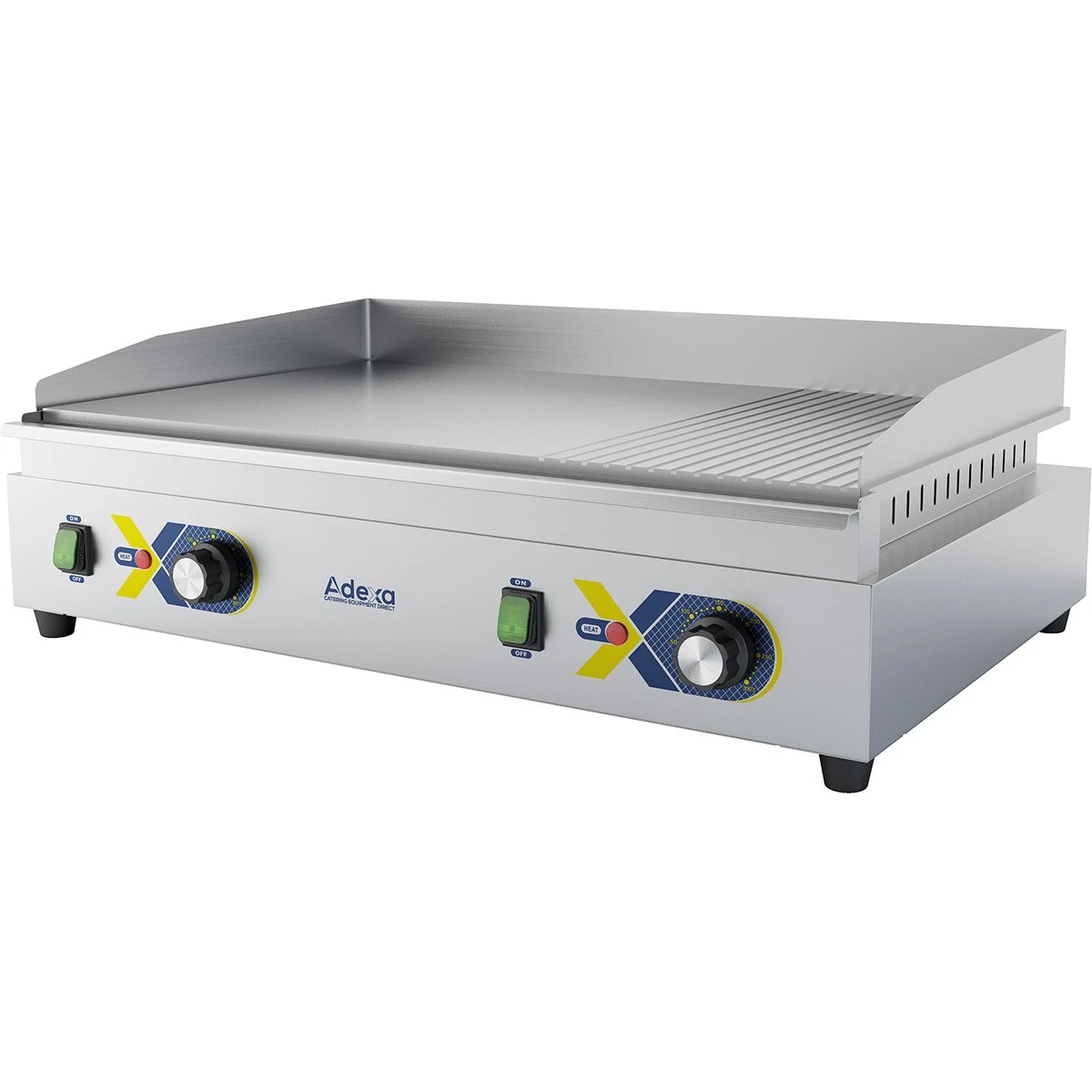 Powerful and reliable, this professional steel griddle features a generously sized chromed steel cooking surface that is both grooved and smooth, perfect for breakfast, lunch or dinner services. The heavy duty elements ensure a rapid heat up and an even spread of heat across the wide griddle surface. With simple dial thermostat control and removable fat collection drawer, the restaurant griddle is incredibly easy to use, clean and maintain. This catering fry top is an incredible bargain at the current discount sale price.