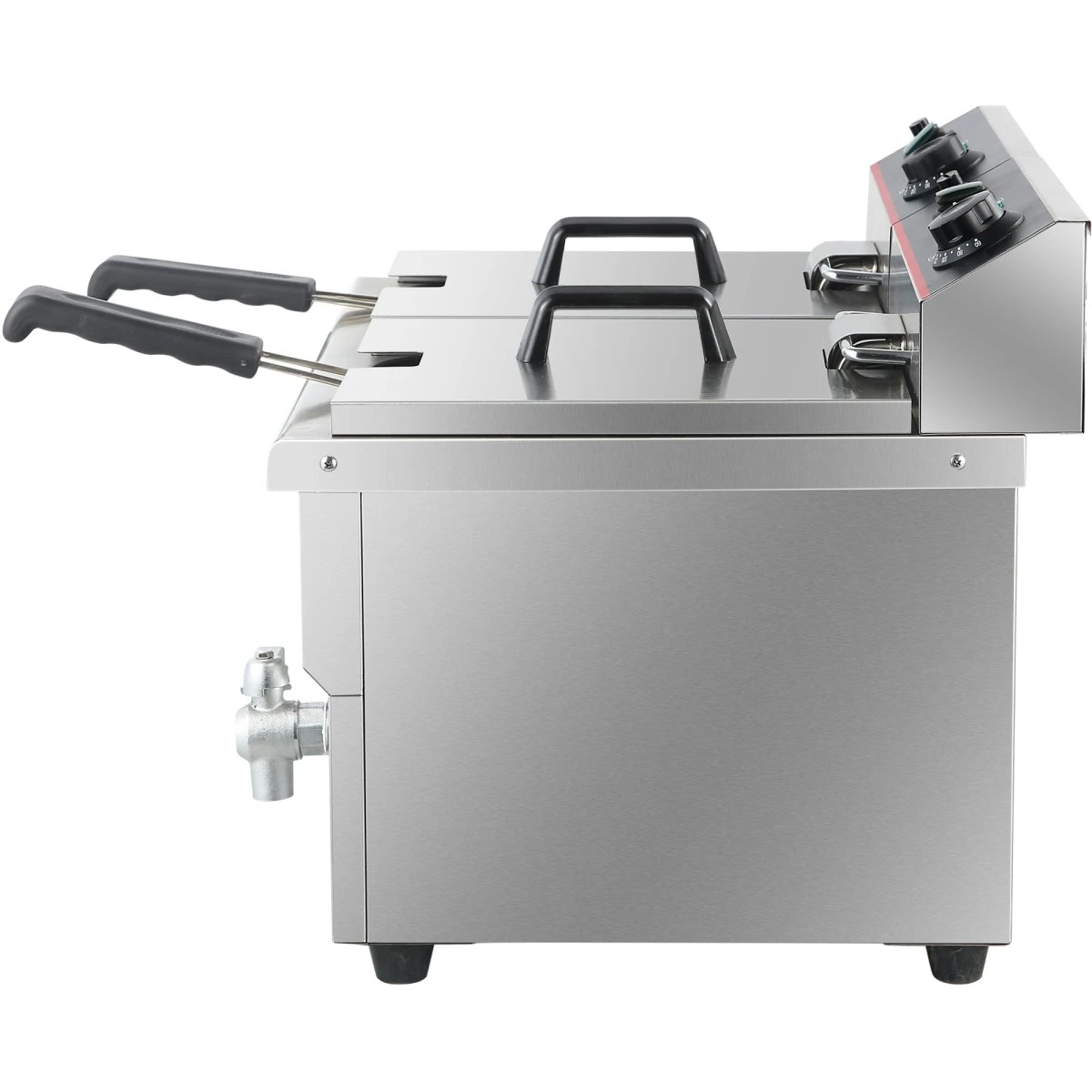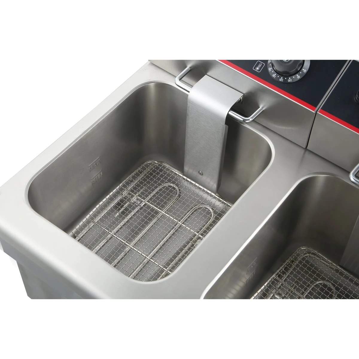 A great quality double tank professional electric fryer. Incredibly space saving with its 580mm width yet large capacity with 2 x 12 litre tanks. An ideal piece of equipment for high output fast food catering businesses it’s a must have for any restaurant, café, takeaway or canteen. Huge discount savings at the moment at this bargain sale price.