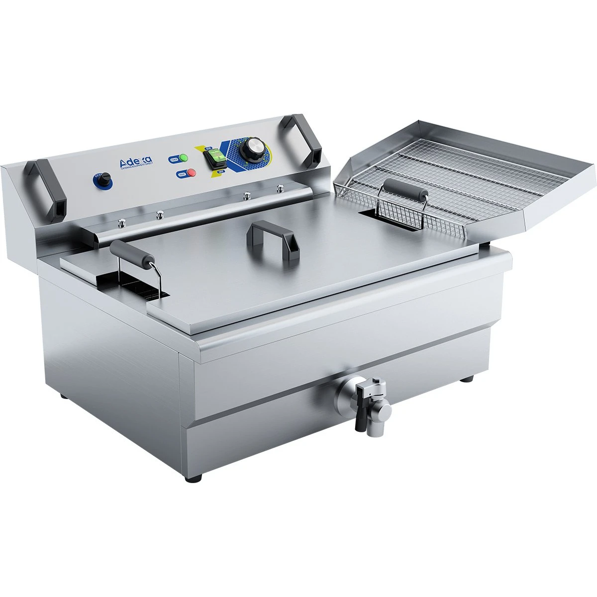 Heavy duty and very high capacity single tank professional fryer. With a industrial sized 22 litre oil tank and single high capacity basket, there’s plenty of space for big batches of food or whole fishes. Due to the size of the basket, it’s fitted with two sturdy handles for stability. This catering fryer also features a simple yet accurate dial temperature control as well as a front mounted oil drain valve for mess-free cleaning. This fryer is a huge bargain right now at this discount sales price.