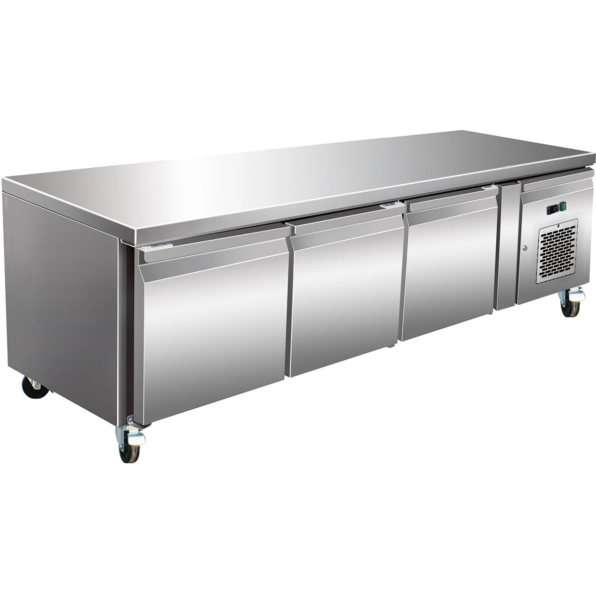 This commercial counter fridge (or low boy / underbroiler) is a fantastic solution for making the most effective use of your catering kitchen space. Designed to be highly sturdy and robust, this counter chiller allows you to position other appliances on top, such as grills, boiling tops, fryers or ovens. This is an incredibly space saving piece of equipment for your restaurant, hotel or bar.