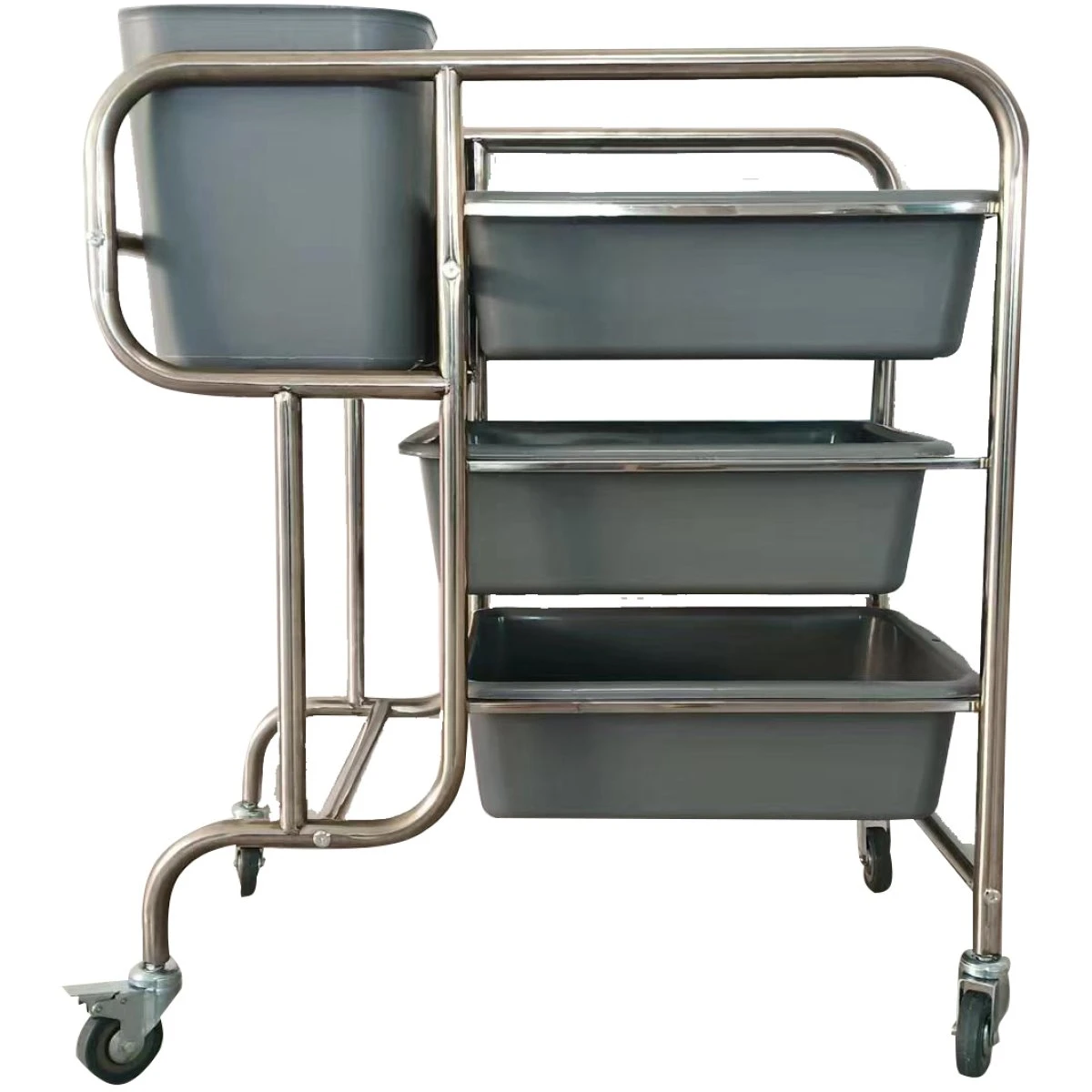 This commercial stainless steel bussing cart combines front of the house appeal with back of the house durability. The trolley features 4 castors for easy transport, practical for any restaurant, hotel or other catering establishment.