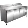 High quality commercial refrigerated pizza prep table made in stainless steel with 2 doors and 1 shelf per door. Granite worktop, ventilated cooling and automatic defrost. A temperature range of +2 to +8°C and digital display. A perfect professional addition to any pizzeria och sandwich shop.